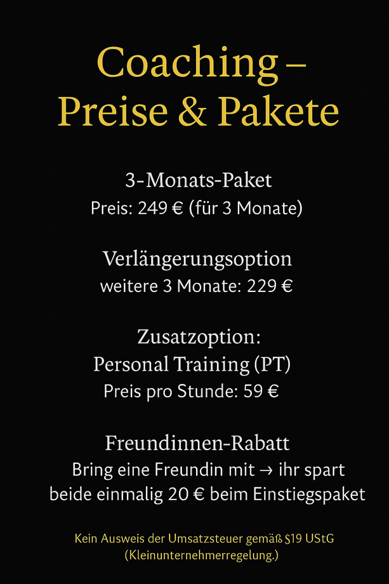 Kontaktiere mich einfach per WhatsApp oder E-Mail, um dich anzumelden oder weitere Informationen zu erhalten. Ich freue mich auf dich!